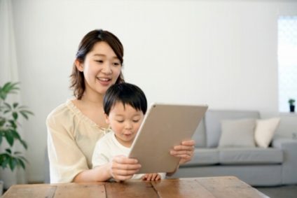 子どもと一緒に敏感肌用のスキンケア用品を使ってお肌のお手入れ