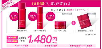 アヤナスのトライアルセットは10日分になっていますので、本格的な効果を体験するには物足りないかもしれませんが、肌との相性や使用感、そしてアンチエイジングに期待できる効果は少なからず実感できるでしょう。敏感な年齢肌は使用する化粧品によってさらに肌のコンディションが悪くなります。