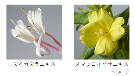 その中には何が含まれているかと言うと、スイカズラエキスにメマツヨイグサエキス。この成分がエネルギーを巡らせて、肌から失われていた明るさやふっくら感、そしてやわらかさを取り戻してくれます。